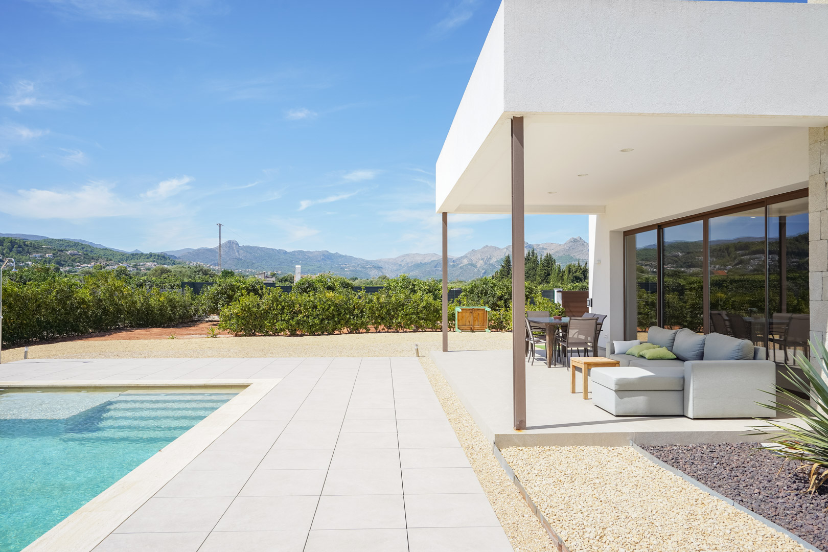 Built in 2023 to high quality standards, this exclusive villa is located in the peaceful Orba Valley and offers panoramic 360° views of the surrounding mountains, including the Sierra de Segaria and Montgó.
