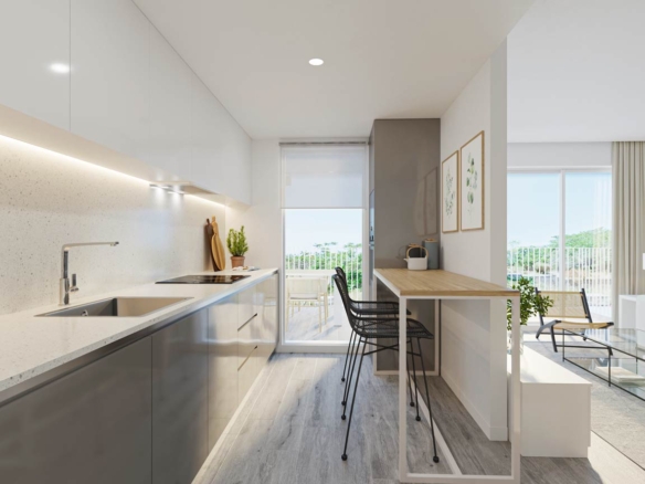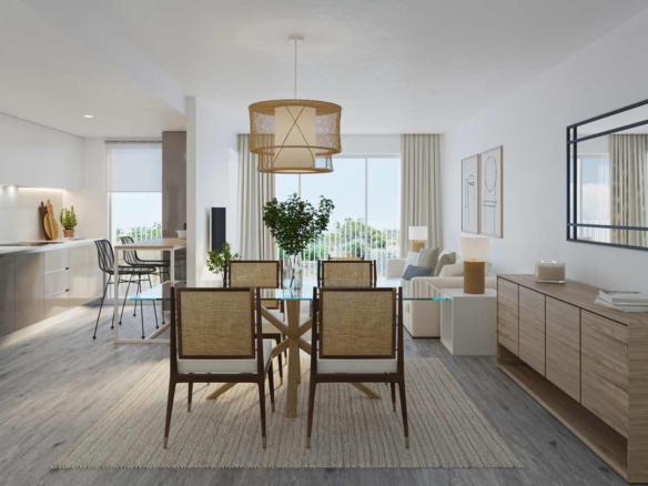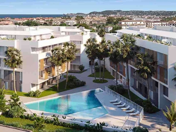 Discover this spacious three-bedroom apartment, a gem of 113 m2, located in an exclusive complex that will be completed by June 2025. Conveniently located within walking distance of both the historic center of Jávea and the bustling port, this apartment offers a perfect combination of luxury and accessibility. Upon entering through the hall, you are welcomed by a generous living-dining room with a fully equipped open kitchen to the left, ideal for convivial gatherings and culinary delights. Adjacent to the kitchen is a convenient laundry room, making daily life even more comfortable. On the right side of the hall you will find two spacious bedrooms, one with an en-suite bathroom for ultimate privacy and luxury. There is also a third bedroom and a second bathroom, making this home perfect for families or guests. Enjoy the outdoors and beautiful views from the balcony, accessible from the living room through sliding windows that create a seamless transition from inside to outside. This apartment offers a harmonious interplay between indoor and outdoor living, where you can relax and enjoy the Mediterranean lifestyle.Multiple options are available for finishes. The complex also offers a beautifully landscaped communal garden with a large communal pool. There is the possibility to buy parking and storage space as well. With prices ranging from €281,000 to €768,000 in phases I and II and prices ranging from €245,000 to €511,000 in phase III, this complex truly offers an option for everyone, regardless of your budget or preferences. Ground floor apartments, penthouses, 2 bedroom apartments, 3 bedroom apartments, …. enjoy a wide range of choices. Phases I and II are already under construction and the estimated completion time is June 2025 (subject to change). Phase III will be completed in February 2026. Be quick as availability is limited and prices are informational and subject to change. Take advantage of this unique opportunity and make your dream of a luxury Mediterranean lifestyle a reality.
