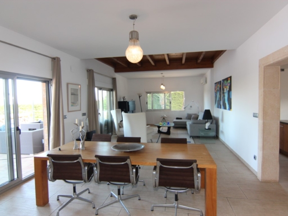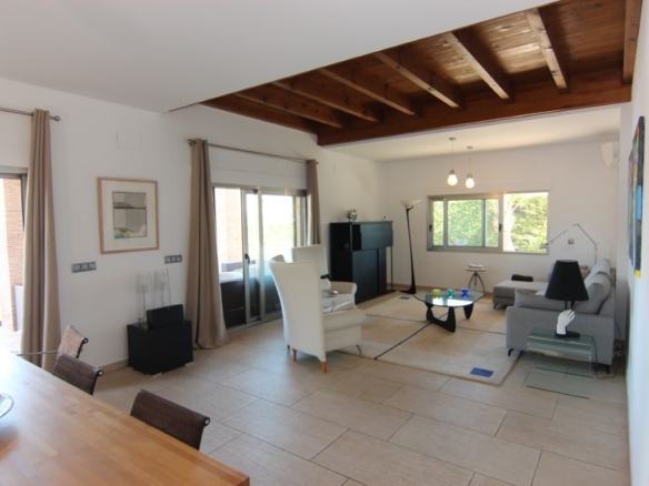 The villa has a spacious entrance hall with double height, a large living room from where one has access to the covered terrace and garden, a spacious kitchen with a pantry.