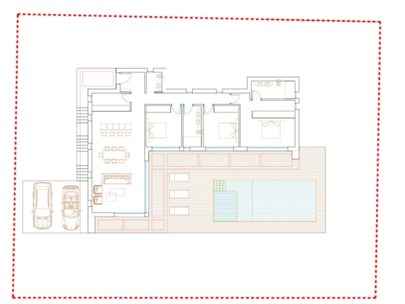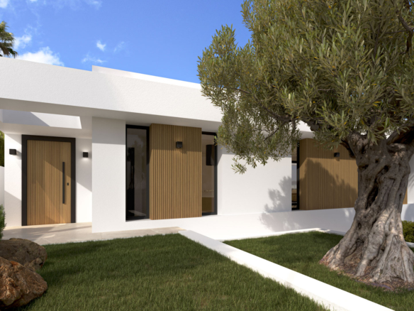 Diseñada en una sola planta, esta fantástica villa dispone de tres dormitorios con camas dobles tipo suite, un amplio y luminoso salón-comedor conectado a una moderna cocina americana, desde donde grandes ventanales dan acceso al jardín donde podrá disfrutar de la piscina, dos preciosos porches y unas impresionantes vistas al Peñón de Calpe.