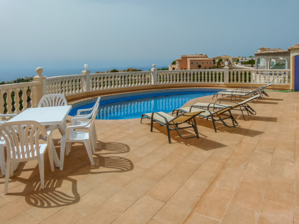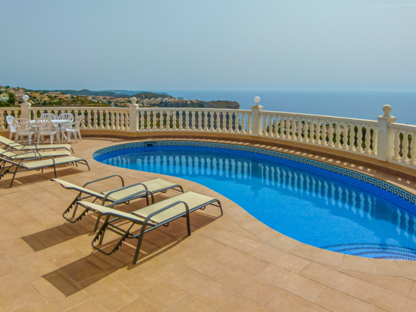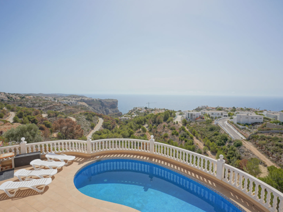 Situada en Cumbre del Sol, esta villa ofrece impresionantes vistas sobre los acantilados y el azul del mar Mediterráneo. La villa se distribuye en dos plantas. En la primera planta hay un salón-comedor con estufa, una cocina semiabierta y un dormitorio doble con baño ensuite. A través de ventanas correderas hay acceso directo a una gran terraza tanto desde el dormitorio como desde el salón. La planta baja consta de dos dormitorios dobles, dos cuartos de baño y una habitación extra que posiblemente podría ser utilizado como una habitación individual. En el exterior, hay una gran terraza junto a la piscina y una barbacoa. También hay una terraza rodeada de árboles frutales en el lado norte. La villa dispone de aire acondicionado y calefacción por suelo radiante. También hay aparcamiento para dos coches. También hay un proyecto aprobado para ampliar la villa en 100 m2 si es necesario. La villa está a sólo 4 minutos en coche de la idílica playa de guijarros de Cala Moraig y a 10 minutos del pueblo costero turístico de Moraira y tiene una licencia de alquiler. A Jávea se llega en 20 minutos. Tanto la escuela internacional y varios supermercados grandes se puede llegar en sólo 5 minutos.