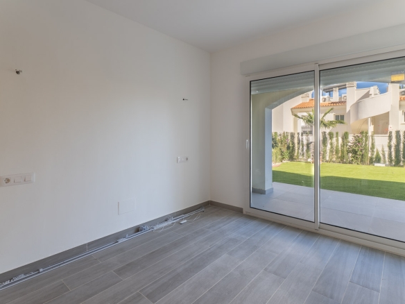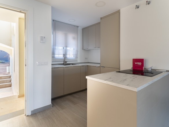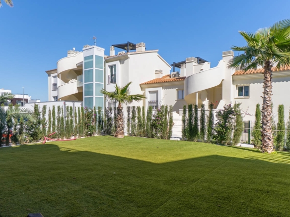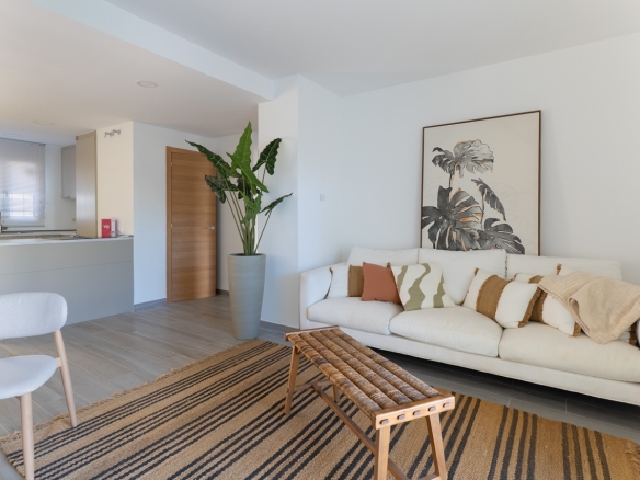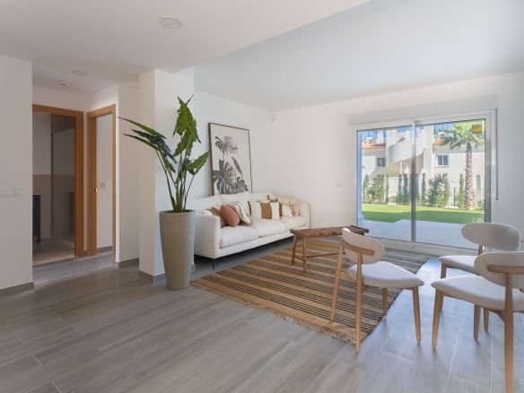 Piso de planta baja que se integra en una moderna urbanización de estética mediterránea que destaca por su diseño funcional y cuidado. La vivienda se distribuye en dos habitaciones equipadas con armarios empotrados que optimizan el espacio de almacenaje, un baño completo y una zona de día que unifica el salón comedor con una cocina abierta, favoreciendo la amplitud y la fluidez de movimiento.