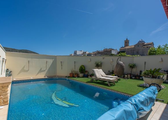 Esta villa única está situada en el tranquilo y pintoresco pueblo de Benitatchell, a sólo 10 minutos en coche de la idílica playa empedrada de El Portet en Moraira y del animado paseo marítimo de Jávea. La propiedad se distribuye en 3 plantas, interconectadas por escaleras y ascensor, y tiene potencial para convertirse en un hostal. La planta baja está habilitada como oficina con entrada independiente, además también hay un gimnasio y un garaje de más de 100m2 con techo alto. La primera planta consta de una cocina con comedor, un salón muy espacioso, un aseo, un dormitorio con baño en suite y un trastero. El salón linda por un lado con un balcón desde el que puedes disfrutar de hermosas vistas de las verdes colinas y huertos que rodean Benitatchell. Al otro lado del salón hay una naya acristalada, orientada al sur, donde podrás disfrutar del sol en invierno. A través de la naya se accede a la terraza, ajardinada con césped artificial, donde podrás relajarte junto a la piscina. La segunda planta consta de 2 dormitorios muy amplios con cuartos de baño en suite, uno de los cuales tiene también una cocina americana. Ambos dormitorios tienen un balcón privado en el lado norte y una gran terraza compartida en el lado sur. Hay vistas al mar tanto desde los balcones como desde la terraza.