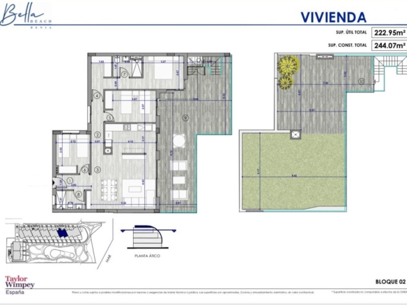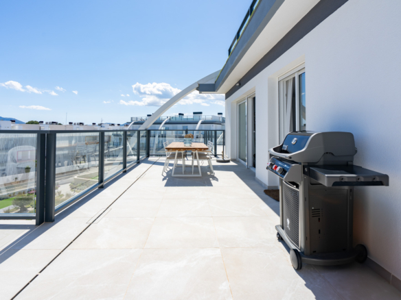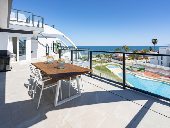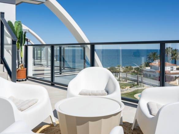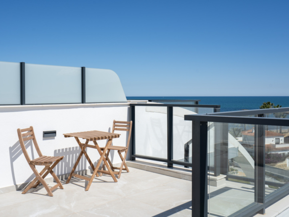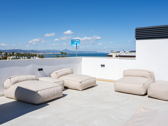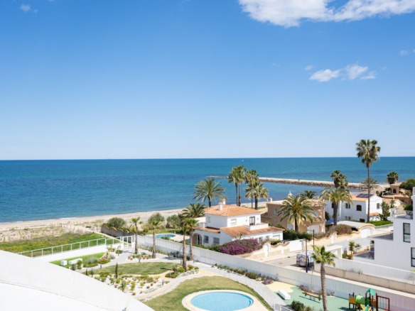 Fantastique penthouse de luxe avec vue panoramique sur la mer, directement sur la plage de sable de Playa de la Almadraba, situé dans le complexe moderne Taylor Wimpey Bella Beach. Ce penthouse exclusif offre une vue imprenable sur la mer depuis toutes les pièces et dispose également d’une terrasse sur le toit de pas moins de 94,85 m2 où vous pourrez profiter d’une vue spectaculaire à 360°. À l’est, le littoral s’étend jusqu’à Gandia, à l’ouest les tours du Montgó, au nord vous regardez directement la mer et au sud vous avez des vues sur l’impressionnante chaîne de montagnes de la Sierra de Segaria.