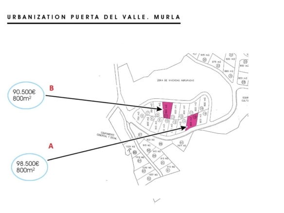 Ces 2 terrains à bâtir sont situés dans l’urbanisation Puerta del Valle à Murla. Les deux parcelles ont de l’eau et de l’électricité. La parcelle A a 852 m2 et la parcelle B a 808 m2.