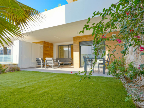 Le mobilier peut être acheté séparément pour 15 000 euros. L’urbanisation Monte Cala Gardens dispose de deux belles piscines et d’un parking couvert juste devant votre propriété. La plage idyllique de Cala Llebeig est accessible à pied.