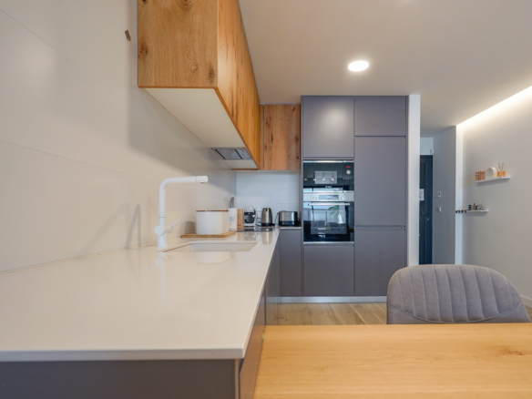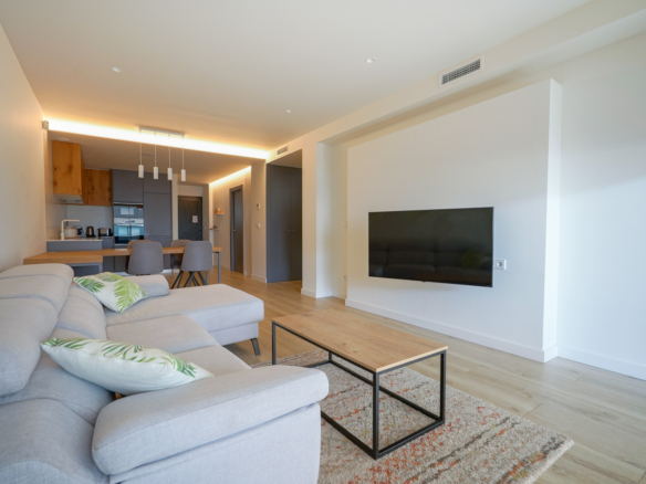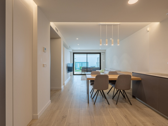 Appartement ensoleillé de deux chambres à coucher à vendre à Cumbre del Sol, Cet appartement moderne est situé dans l’urbanisation Montecala Gardens et a été achevé il y a deux ans. L’appartement se trouve au premier étage et est accessible par les escaliers et l’ascenseur. Vous entrez dans un hall d’entrée avec une buanderie sur la droite. En continuant à marcher, vous entrez dans une cuisine moderne et ouverte, équipée de tous les appareils électriques, y compris un réfrigérateur-congélateur, une plaque de cuisson à induction, un four, un micro-ondes et un lave-vaisselle. À côté se trouve un salon spacieux d’où vous avez un accès direct à la terrasse grâce à des fenêtres coulissantes. À côté du salon se trouve la chambre principale avec une luxueuse salle de bains attenante et plusieurs armoires encastrées. Cette chambre dispose également d’un accès direct à la terrasse par des fenêtres coulissantes.