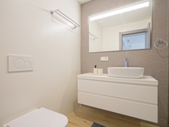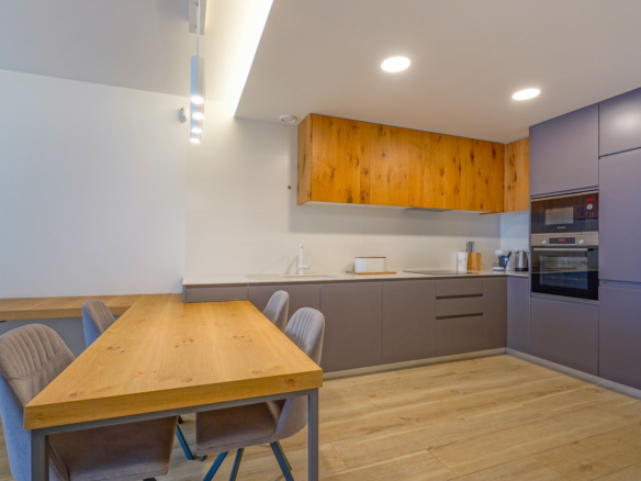 Grâce à l’orientation sud de l’appartement, vous pouvez trouver une place au soleil en toute saison. L’appartement est équipé de la technologie la plus récente, y compris le chauffage par le sol, la climatisation, les volets électriques et les stores électriques.