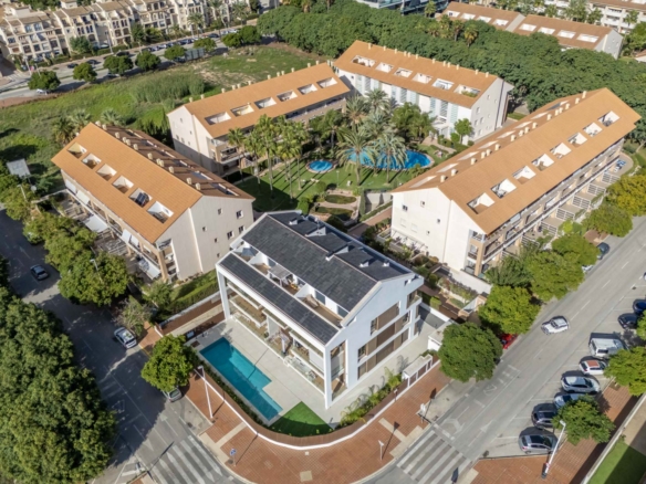 Le complexe dispose d’une piscine commune avec un jardin bien entretenu, partagé avec seulement huit autres appartements.