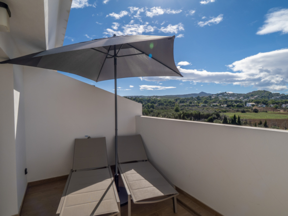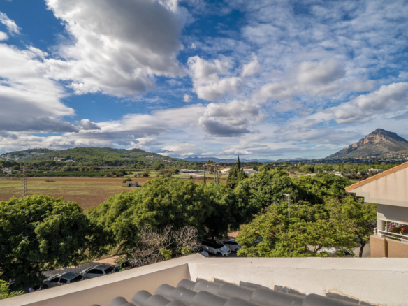 Ce magnifique penthouse est situé au deuxième étage d’un petit immeuble, à seulement 600 mètres de la plage d’Arenal. Grâce à son emplacement à côté d’une zone verte, l’appartement bénéficie d’une vue imprenable et préservée sur la vallée, le Montgó et le paysage montagneux en arrière-plan.
