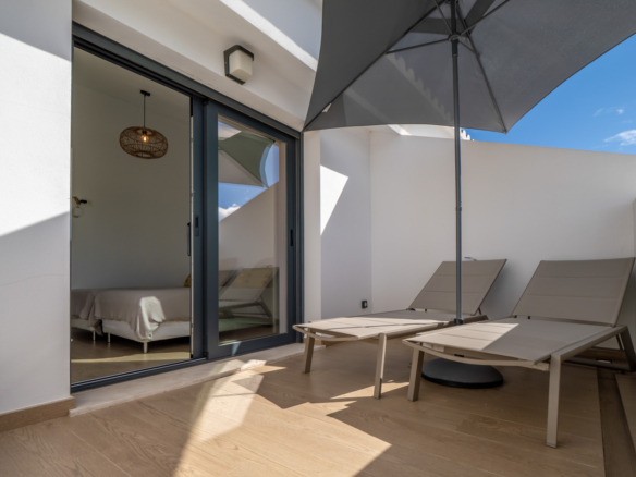 L’étage supérieur comprend deux autres chambres doubles, une salle de bains et une terrasse sur le toit, où vous pouvez profiter du soleil toute la journée grâce à son orientation sud-ouest.
