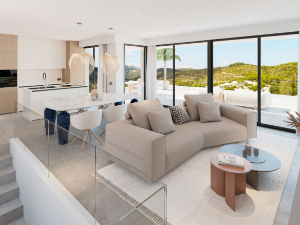 Située dans le quartier résidentiel calme de Monte Solana à Pedreguer, cette élégante villa neuve offre un style de vie méditerranéen raffiné, entouré de nature et avec des vues dégagées sur les montagnes et le Castillo de l’Ocaive.