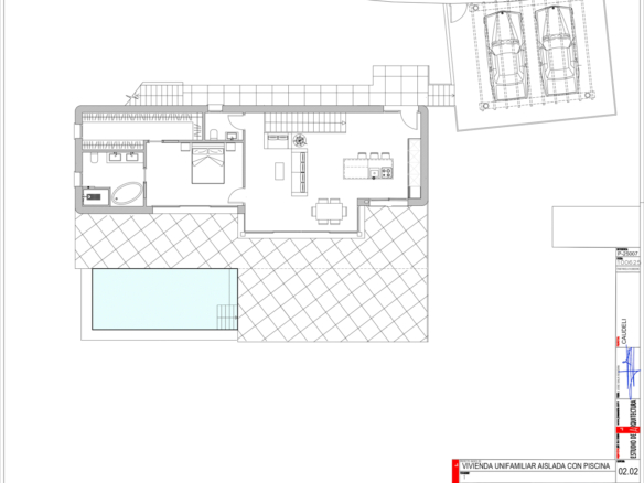 La propriété comprend également une buanderie et un parking couvert pour deux véhicules.