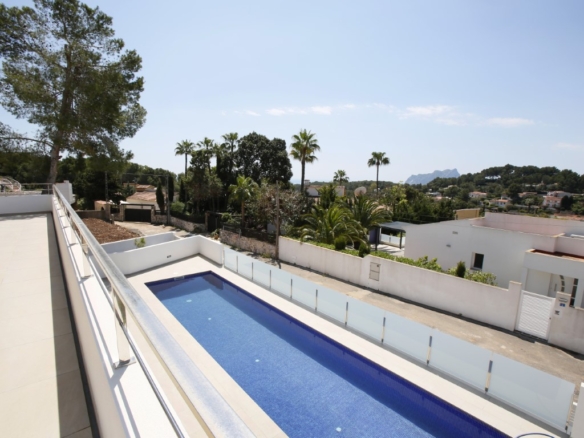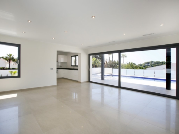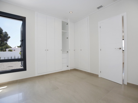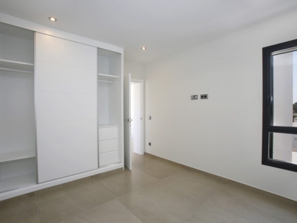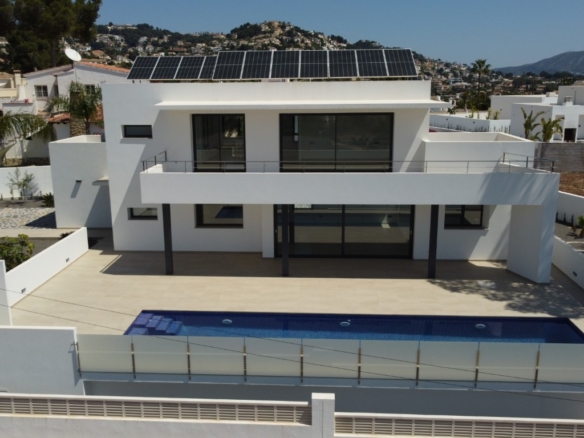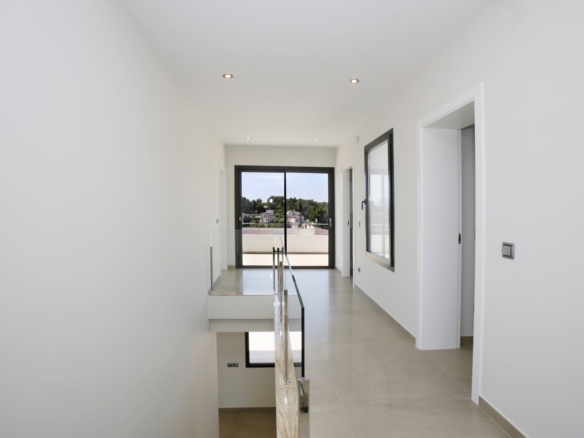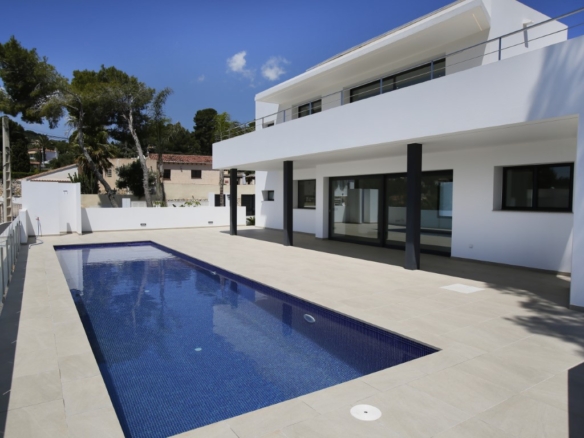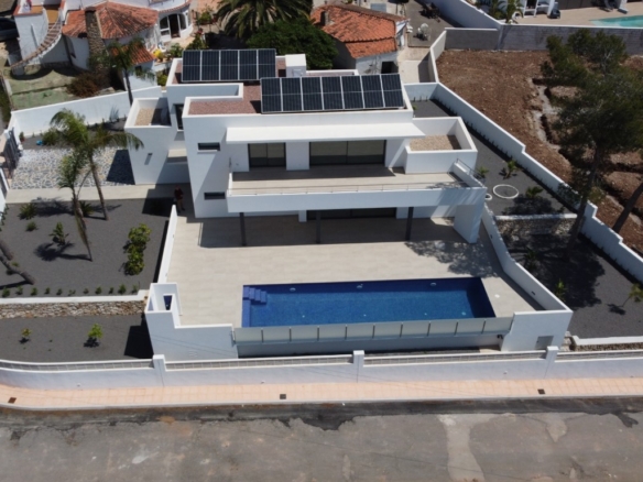 Villa moderne de nouvelle construction finie à vendre à Benissa, située dans un endroit calme et orientée au sud. Au rez-de-chaussée il y a un hall d’entrée avec toilettes invités, un spacieux séjour avec cuisine ouverte, une chambre double avec salle de bain en suite et un garage. Depuis le salon, vous pouvez passer par les grandes fenêtres coulissantes vers la terrasse couverte et la piscine. Au premier étage se trouve la chambre principale avec salle de bain en suite et une grande terrasse privée, en plus il y a une chambre double et une salle de bain. Dehors, il y a un joli jardin méditerranéen avec une grande piscine chauffée avec douche au bord de la piscine. Il y a un chauffage au sol au moyen d’une pompe à chaleur et il y a des panneaux solaires photovoltaïques pour produire de l’électricité, il y a aussi la climatisation, une alarme, un dépôt d’eau pour le jardin et 1 an d’entretien du jardin et de la piscine est inclus.