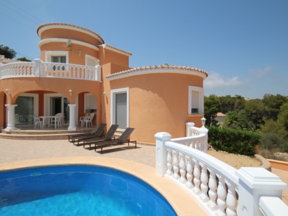 Villa te koop in Javea met een panoramisch uitzicht. Op het gelijkvloers is er een eetkamer, een salon, een volledig uitgeruste keuken en 2 tweepersoonsslaapkamers met een en-suite badkamer, de derde tweepersoonsslaapkamer bevindt zich in op de eerste verdieping, deze heeft ook een en-suite badkamer en een privé terras. Buiten is er een ruim zonneterras met zwembad en jacuzzi. Er is een pré-installatie van vloerverwarming en airconditioning voorzien.
