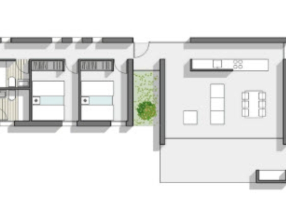 Moderne nieuwbouw villa te koop in Pedreguer, gelegen in de rustige urbanisatie Monte Solana met panoramische zichten. Deze villa kan gebouwd worden op verschillende percelen, ook op een perceel met zeezicht. Het project kan aangepast worden naar uw eigen wens en kan klaar zijn binnen een termijn van 14 maand. Er is een salon/eetkamer, vanwaar men het overdekte terras kan betreden, een open keuken, een masterbedroom met dressing en en-suite badkamer, 2 tweepersoons slaapkamers en een familie badkamer.
