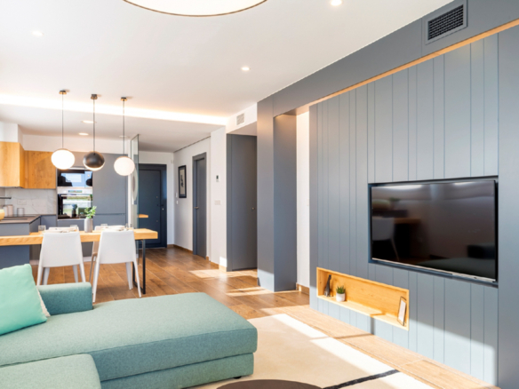 Het appartement beschikt over een ruime woon-eetkamer met een luxe open keuken, drie comfortabele slaapkamers, twee moderne badkamers en een handige wasruimte. Geniet van het buitenleven op het terras met privétuin, toegankelijk vanuit zowel de woonkamer als de hoofdslaapkamer via schuiframen die zorgen voor overvloedig natuurlijk licht.