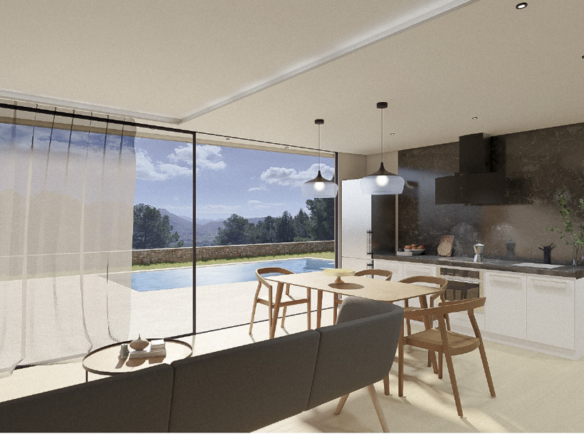 Deze villa wordt gebouwd op een grondstuk in de rustige wijk La Solana Gardens op wandelafstand van het pittoreske dorpje Alcalali. Alcalali is een klein, authentiek dorpje gelegen in de zonnige vallei genaamd Valle de Pop omringd door majestueuze bergketens, maar toch kort bij de kust. De villa is verdeeld over drie verdiepen. De benedenverdieping bestaat uit een woo-eetkamer met een open keuken, een tweepersoonsslaapkamer en een badkamer. De bovenverdieping bestaat uit twee tweepersoonsslaapkamers met een gedeelde badkamer. In de semi-kelderverdieping bevindt zich een garage van 80 m2.In de prijs is ook een zwembad en een terras van 30 m2 inbegrepen. Alcalalí heeft een zeer centrale ligging, op 20 minuten bereik je zowel de stranden van Denia als die van Calpe. Ook de leuke kustdorpjes Javea en Moraira zijn op een half uurtje te bereiken. Andere dorpen in de vallei zoals Jalón, Parcent, Lliber zijn op 5 minuten te bereiken. Alcalalí is perfect om te wandelen en te fietsen tussen olijfbomen, sinaasappelbomen, amandelbomen en wijngaarden. Bovendien zijn in de omringende bergketens meerdere prachtige wandelroutes.