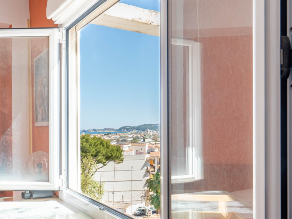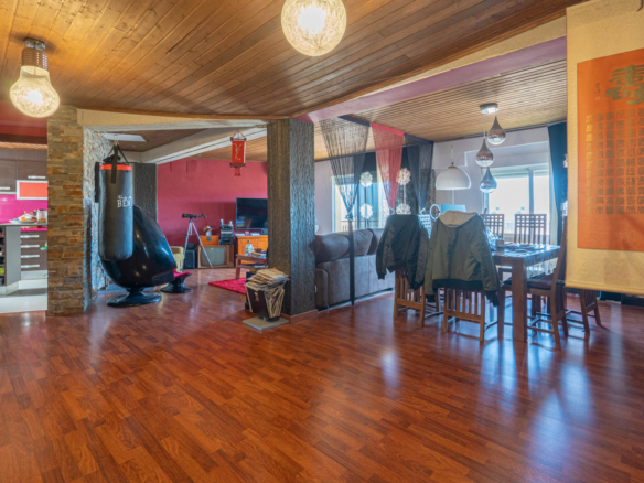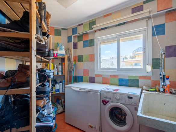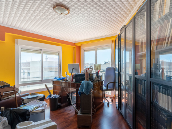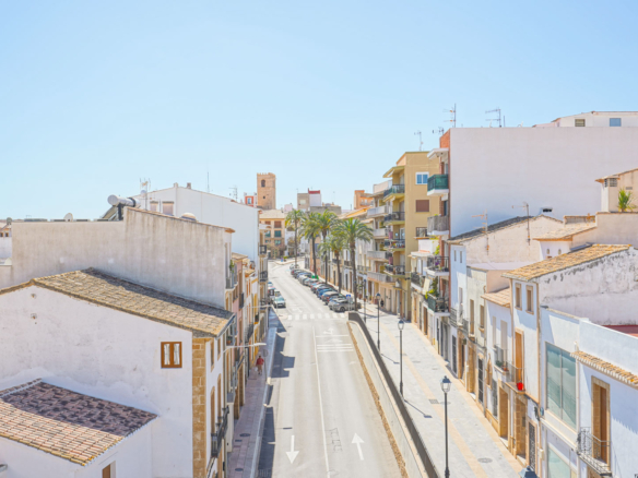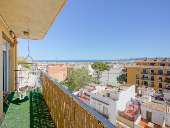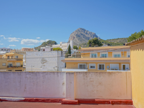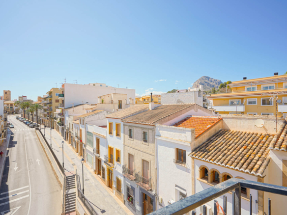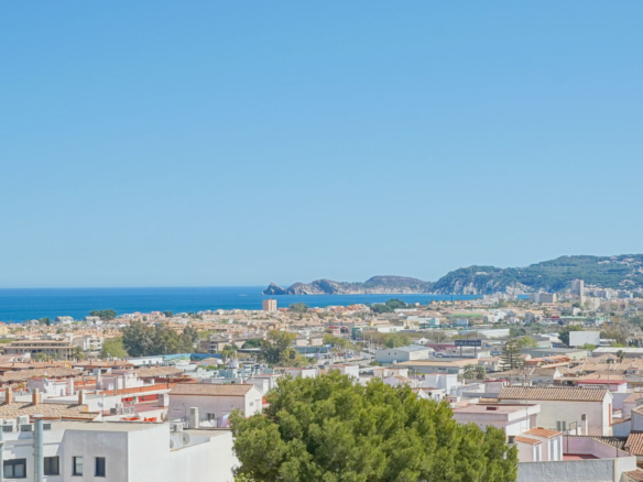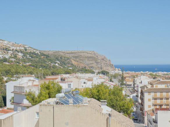 Dit ruime appartement van 178 m2 is gelegen op de vierde verdieping van een klein appartementsgebouw aan de rand van het centrum van Javea. Dankzij de centrale locatie kunt u zowel alle faciliteiten in het oude stadscentrum als het strand en de haven al wandelend bereiken. Deze woning bestaat uit twee samengevoegde appartementen waardoor u de enige bewoner zult zijn op de vierde verdieping. U komt het appartement binnen in een ruime woon-eetkamer. Via de schuiframen is er toegang tot een balkon gericht op het zuiden. Aangrenzend bevindt zich de keuken met een kookeiland. Vanuit de woonkamer leidt een gang naar een dubbele slaapkamer met een tweede balkon, een kantoorruimte waar meerdere ramen voor veel natuurlijke licht inval zorgen en een klein balkon gericht op het westen, een ruime badkamer (momenteel in renovatie), een slaapkamer en een wasruimte. Aan de andere kant van de woonkamer bevindt zich een tweede gang met een badkamer en twee dubbele slaapkamers. Zowel vanuit de woonkamer als vanuit twee slaapkamers kunt u genieten van uitzicht over de baai van Javea. Eén verdieping hoger bevindt zich een zeer groot gemeenschappelijk dakterras met een 360° panoramisch uitzicht op de zee, de Montgó en het dorp.