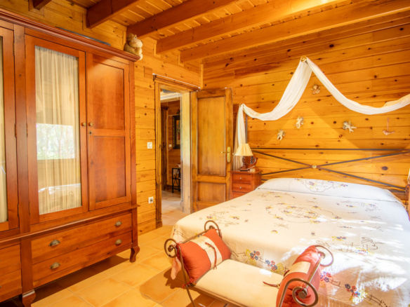 Als je de villa binnenkomt, word je begroet door een warme en gastvrije sfeer. Op de begane grond zijn drie ruime tweepersoonsslaapkamers, waarvan een met en-suite badkamer, perfect voor het comfort van familieleden of gasten. De woon-eetkamer, met zijn centrale open haard, nodigt je uit om ‘s avonds te ontspannen, terwijl je geniet van het prachtige uitzicht op de tuin en het zwembad. Vanaf hier worden het landschap van de omliggende vallei en de omringende bergen onderdeel van het huis, waardoor een unieke sfeer van sereniteit ontstaat. De aparte keuken, uitgerust met bijkeuken en wasruimte, is ontworpen voor degenen die graag koken terwijl ze genieten van de rust van de omgeving.