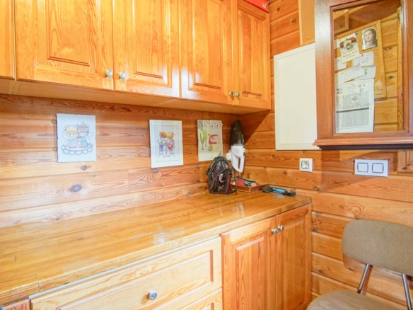 Als je naar boven gaat, verwelkom je een grote open ruimte met een prachtig uitzicht op de natuur. Deze ruimte wordt momenteel gebruikt als kantoor en leeshoek en is de perfecte plek om jezelf te verliezen in creatief werk of gewoon te genieten van de vredige omgeving. Vanaf hier is het panoramische uitzicht een schouwspel dat verandert met het licht van de dag en de seizoenen, en een oase van inspiratie biedt.