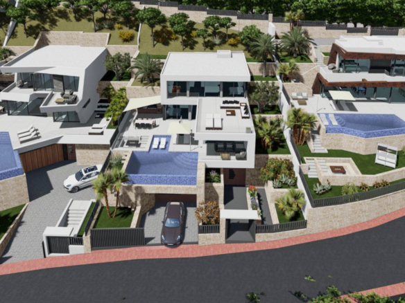 Modern villaproject genesteld in een van de meest exclusieve wijken van Calpe. Deze verbluffende moderne designvilla biedt een onvergelijkbare woonervaring, waar luxe en comfort perfect worden gecombineerd met een bevoorrechte natuurlijke omgeving. Vanaf de verhoogde locatie wordt het uitzicht op de Middellandse Zee en de majestueuze Peñón de Ifach een dagelijks spektakel, dat elke hoek van het pand omlijst met een oneindige blauwe horizon.