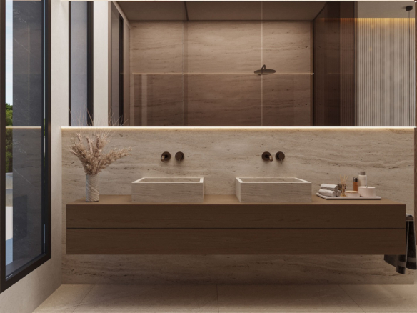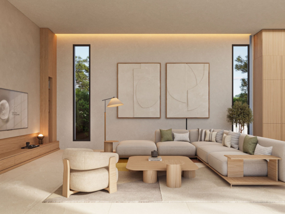 Ontworpen door de gerenommeerde architect Pepe Giner, combineert de woning elegantie, functionaliteit en comfort op één verdieping. Het beschikt over 3 slaapkamers, 4 badkamers, een ruime woon-/eetkamer met open keuken, een wasruimte en bijkeukens.