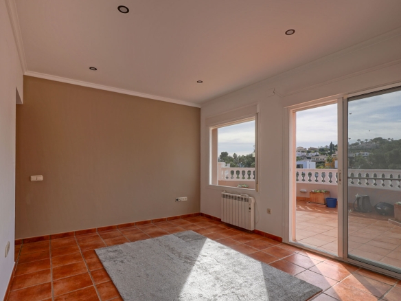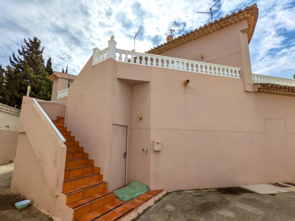 De woning bevindt zich op de bovenverdieping van een vrijstaande villa en biedt privacy en rust. Toegang is via een trap die leidt naar een ruim terras dat de berging/wasruimte verbindt met de hoofdingang. Vanuit de hal zijn de vertrekken als volgt verdeeld: drie slaapkamers (twee tweepersoons en één eenpersoons, allen met inbouwkasten), een complete badkamer, een aparte keuken en een lichte woon-eetkamer met directe toegang tot een prachtig buitenterras, perfect om te genieten van het mediterrane klimaat, buiten te dineren en momenten van ontspanning.