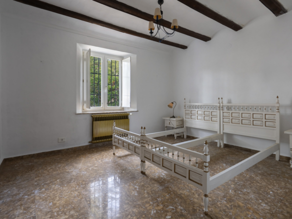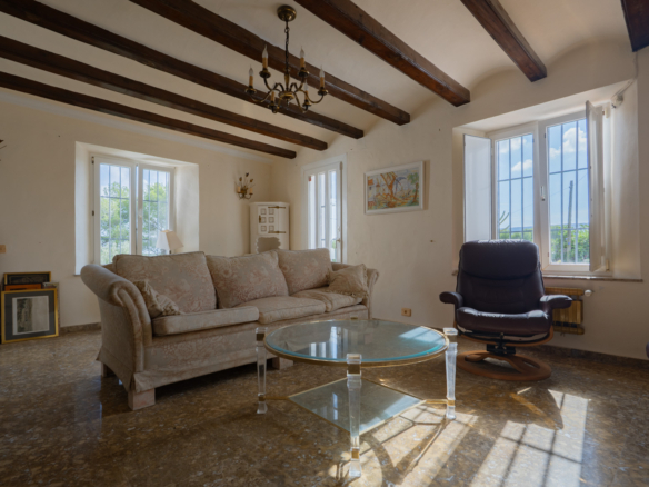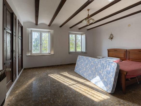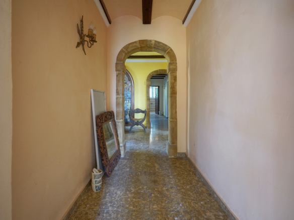 De villa is verdeeld over één verdieping en beschikt daarnaast nog over een semikelderverdieping waar de mogelijkheid bestaat een ruim gastenverblijf te creëren. De hoofdverdieping bestaat uit een inkomhal, een woonkamer met een open haard, een eetkamer, een keuken, een ruime naya met een open haard, een hoofdslaapkamer met een en suite badkamer en twee tweepersoonsslaapkamers met een gedeelde badkamer. De villa is gekenmerkt door haar traditionele kenmerken waaronder het gebruik van tosca stenen, massief houten deuren en bogen. Op het grondstuk staan meerdere eewenoude olijfbomen, cactussen, palmbomen, fruitbomen en dennebomen.