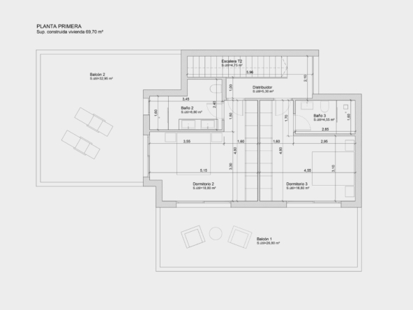 De villa is gelegen op een perceel van 1085 m2 en heeft een bebouwde oppervlakte van 329 m2 verdeeld over drie verdiepen. De benedenverdieping bestaat uit een ruime woon-eetkamer met een open keuken, een hoofdslaapkamer met een dressing en een en suite badkamer met dubbele wastafel en een gastentoilet. De bovenverdieping bestaat uit twee ruime slaapkamers, elke met een en suite badkamer. Op deze verdieping zijn er ook twee grote terrassen. De semi-kelderverdieping bestaat uit een dubbele garage, een wasruimte, een badkamer en een gym.