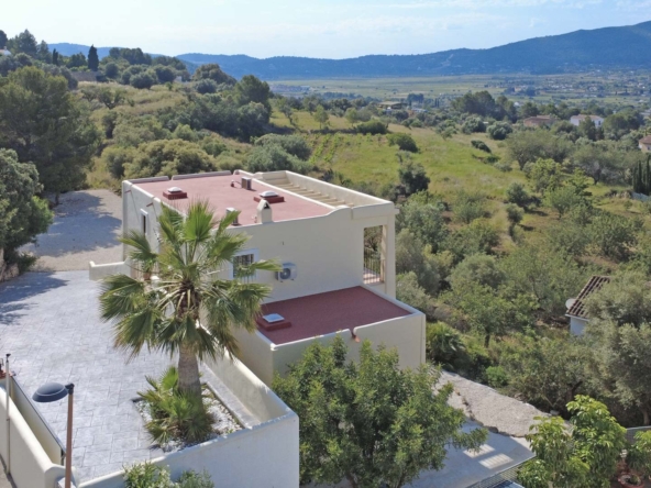 Deze fantastische villa is gelegen op het einde van een doodlopende straat in de rustige urbanisatie Vall de Paraíso, op 1.5 km van het centrum van Jalón. De villa heeft een zuidelijke oriëntatie en biedt een uitgestrekt 180 º graden uitzicht over de Jalón vallei en de acherliggende bergen waaronder Coll de Rates en Sierra de Bernia.