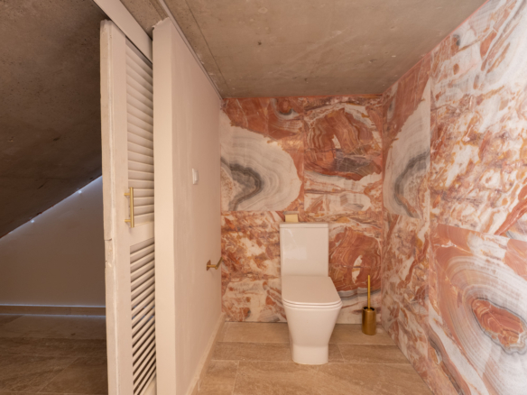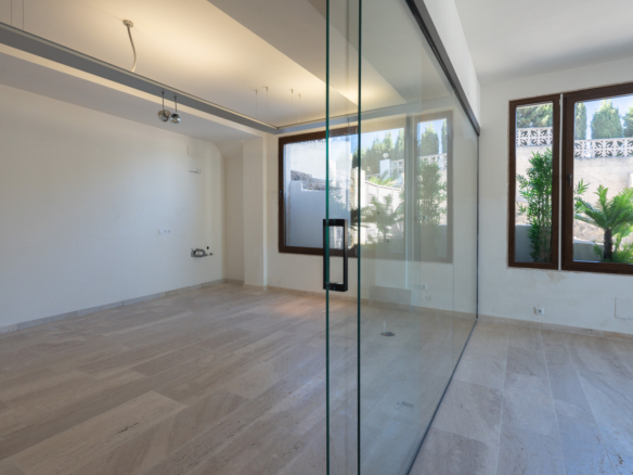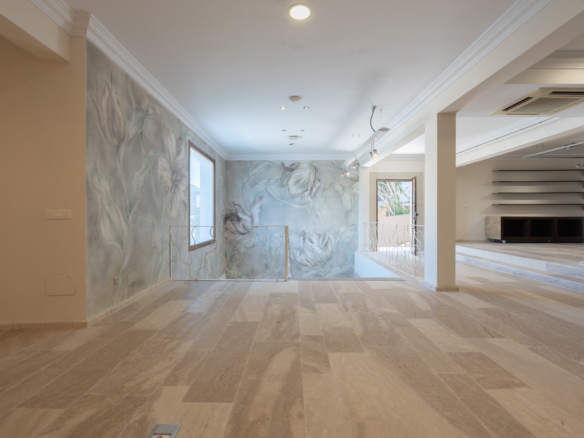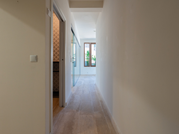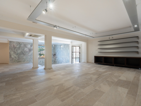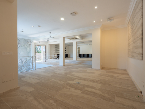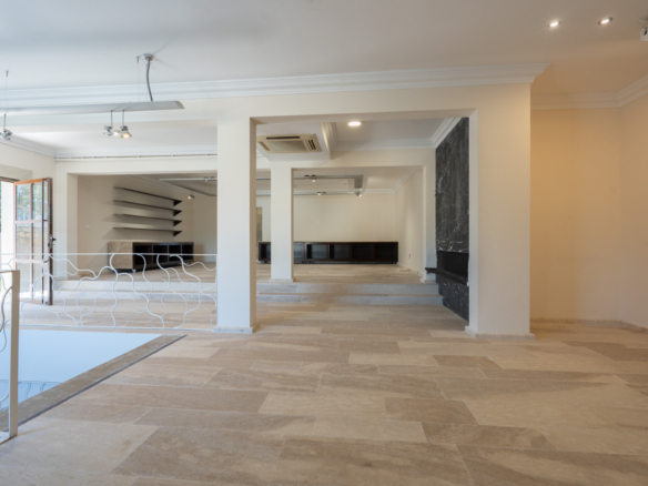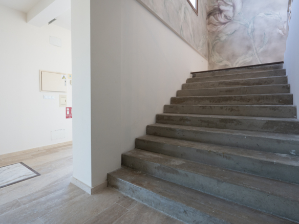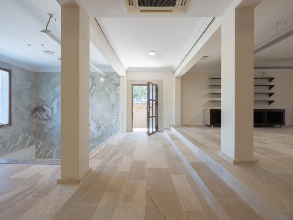 Via een indrukwekkende trap bereikt u de eerste verdieping, waar zich een grote open (diafane) ruimte bevindt. Aansluitend zijn er nog twee aparte kamers en een badkamer. Vanuit deze verdieping is er tevens toegang tot een ruim terras.