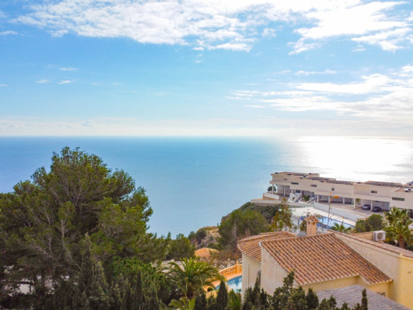 Deze villa is gelegen in een rustige wijk in Cumbre del Sol, met impressionant zeezicht en vlakbij de supermarkt, internationale school en meerdere idyllische strandjes. De benedenverdieping bestaat uit een ruime woon-eetkamer met open keuken, een gastentoilet, een slaapkamer met dressing en en suite badkamer en een opslagruimte. Zowel vanuit de woonkamer als vanuit de slaapkamer heb je toegang tot een inmens terras aangrenzend aan het overloopzwembad en de tuin. Het terras is gedeeltelijk overdekt en beschikt bovendien over een buitenkeuken en een lounge. Op de bovenverdieping zijn er nog 3 slaapkamers, elk met en suite badkamer en toegang tot een groot terras met jacuzzi van waar je tevens prachtig zicht over de medditerraanse zee hebt. Daarnaast heeft de villa ook nog een ruime ondergrondse parking en een wasruimte.