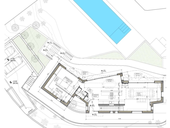 De villa wordt gebouwd op een grondstuk van 1000 m2 in de urbanisatie Tosalet 5 en bestaat uit twee verdiepen. De benedenverdieping bestaat uit een ruime woon-eetkamer met een open volledig uitgeruste keuken met een keramische kookplaat, een oven, een magnetron, een vaatwasser en hoogwaardig inbouwmeubilair. Daarnaast is er op de benedenverdieping ook een tweepersoonsslaapkamer met een en suite badkamer en een gastentoilet. Grote schuiframen geven toegang tot een groot terras aan het zwembad. De bovenverdieping bestaat uit twee tweepersoonsslaapkamers, een badkamer en een wasruimte. Beide slaapkamers hebben via schuiframen toegang tot een ruim balkon. Er is de mogelijkheid een aparte ruimte te bouwen op de benedenverdieping waar een 4de slaapkamer met een en suite badkamer zou kunnen komen. Vloerverwarming (via warmtepomp m.b.v. zonne-energie) en pre-installatie voor airconditioning worden geïnstalleerd. De villa is omringd door een mediterrane tuin van laag onderhoud met lokale planten en kunstgraszones. Het zwembad is voorzien van verlichting en aan het zwembad is een overdekt terras met barbecuezone. Het perceel is volledig omheind, gedeeltelijk door muren en gedeeltelijk door een omheining. Er is een dubbele overdekte garage met een elektrische poort en een oplaadpunt voor elektrische wagens.