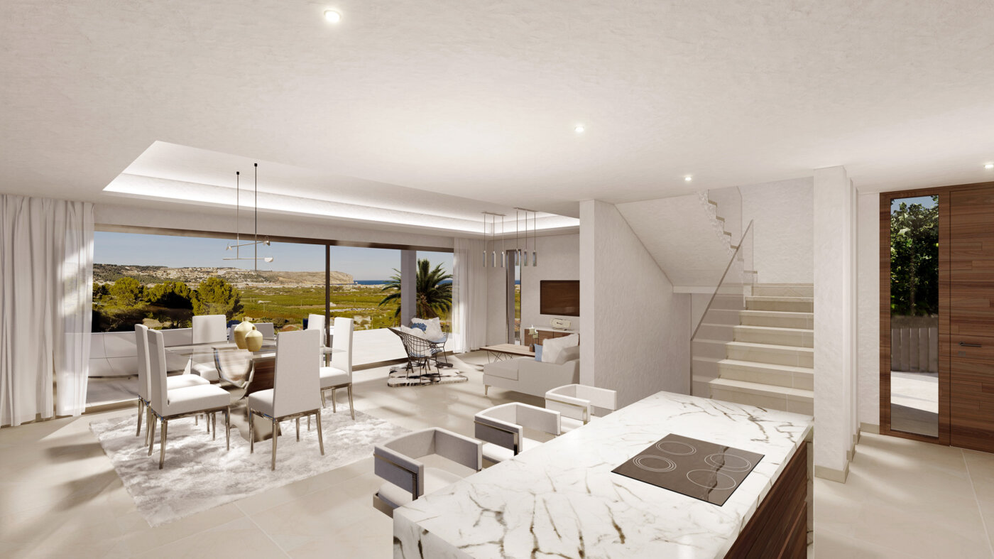 Het strand van Jávea is op minder dan 10 minuten bereikbaar en het charmante kustdorpje Moraira op 15 minuten. Op 5 minuten rijden bevinden zich ook twee internationele scholen.