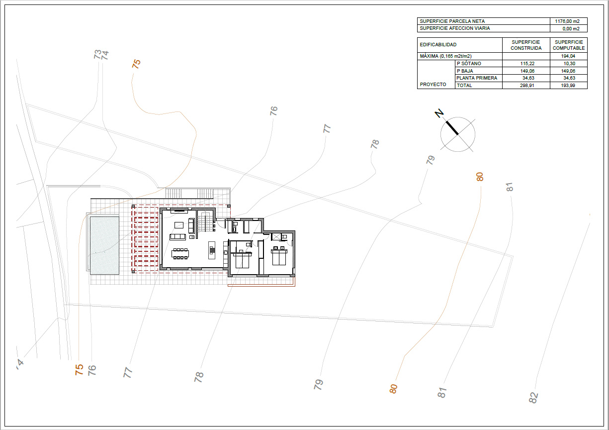 Dit geürbaniseerde grondstuk is gelegen in de moderne urbanisatie Villes del Vent en biedt een mooi uitzicht op de Montgó. Het grondstuk heeft een oppervlakte van 1176 m2 en een noord-westelijke oriëntatie. Er is een bouwvergunning goedgekeurd voor een villa met zwembad met een bebouwde oppervlakte van 298 m2, verdeeld over twee verdiepen + kelder.