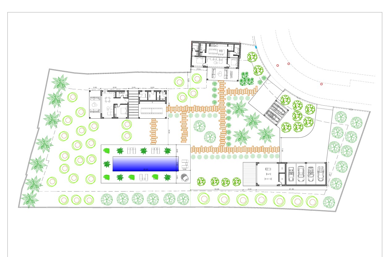 De villa zal beschikken over een ruimtelijke woon- en eetkamer met open keuken, twee ruime slaapkamers met elk een en-suite badkamer, en een gastentoilet. Daarnaast komt er een volledig gastenverblijf, een overdekte barbecuezone met buitenbadkamer, een garage voor drie wagens en zelfs een privégym.