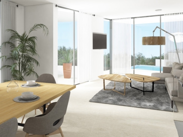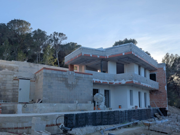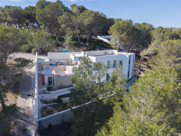 De villa is slim ingedeeld op twee niveaus die perfect opgaan in het perceel en maximale privacy garanderen. Het bovenste niveau is het daggedeelte, waar we een ruime woonkamer vol natuurlijk licht, een gezellige en moderne keuken en een gastentoilet vinden. De grote terrassen, zowel overdekt als niet overdekt, bieden een prachtige buitenruimte, met een chill out ruimte ideaal om te ontspannen bij het spectaculaire overloopzwembad, perfect om te genieten van het panoramische uitzicht.