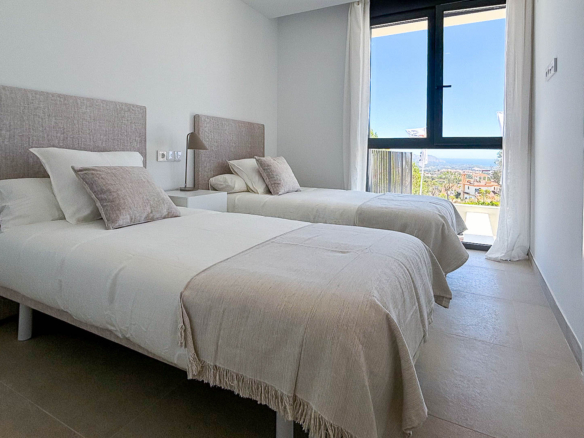 Ze zijn zo ontworpen dat de omgeving een deel van je huis wordt, met terrassen, tuinen, veranda’s en solariums die je uitnodigen om buiten te leven en te profiteren van het uitzonderlijke klimaat van de Costa Blanca. Je kunt kiezen uit woningen met 2 of 3 slaapkamers, met indelingen die passen bij jouw levensstijl: woningen op één verdieping voor meer comfort of op twee niveaus, met de keuken, woonkamer en eetkamer op de begane grond en de slaapkamers op de bovenverdieping. Allemaal met ruime en functionele ruimtes, volledig uitgeruste open conceptkeukens en moderne en elegante badkamers. Er is de mogelijkheid om je huis te personaliseren met opties zoals een privézwembad of jacuzzi op het solarium, zodat elke hoek van je huis jouw stijl en behoeften weerspiegelt.