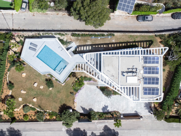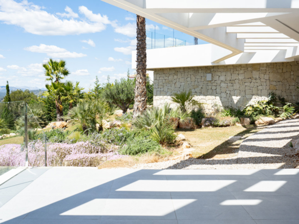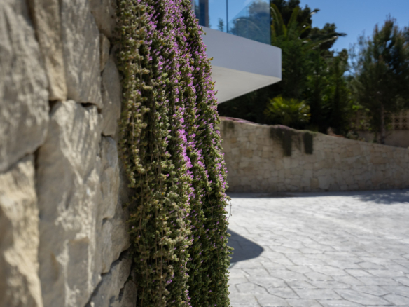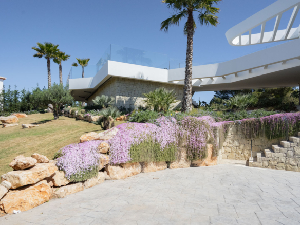 De villa is omgeven door een prachtige mediterrane tuin met aromatische planten en bloemen die nauw aansluiten bij het design van deze unieke villa.