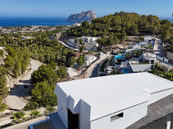 Deze villa ligt in de prestigieuze en rustige wijk Racó de Galeno in Benissa en biedt gemakkelijke toegang tot winkels, restaurants en stranden, en ligt op slechts een paar minuten rijden van de dichtstbijzijnde stranden, waardoor het een perfecte combinatie is van luxe, comfort en de nabijheid van de zee. De villa geniet een prachtig panoramisch uitzicht op de zee en de Peñon de Ifach en is gebouwd met hoogwaardige materialen en minutieuze aandacht voor detail. De villa staat op een ruim perceel van 1.545 m² en biedt 580 m² bebouwd oppervlak, met toegang tot de eigendom vanaf de bovenste en onderste weg, beide met automatische poorten. De villa is verdeeld over drie verdiepingen, verbonden door een lift en een interne trap.