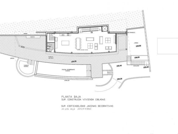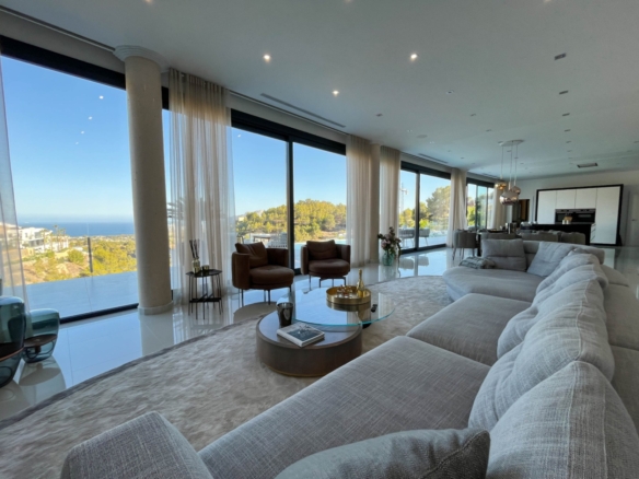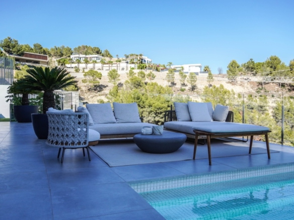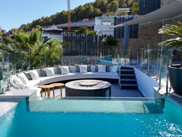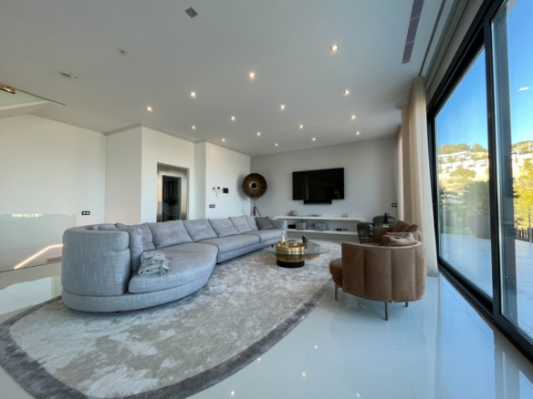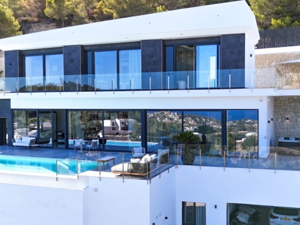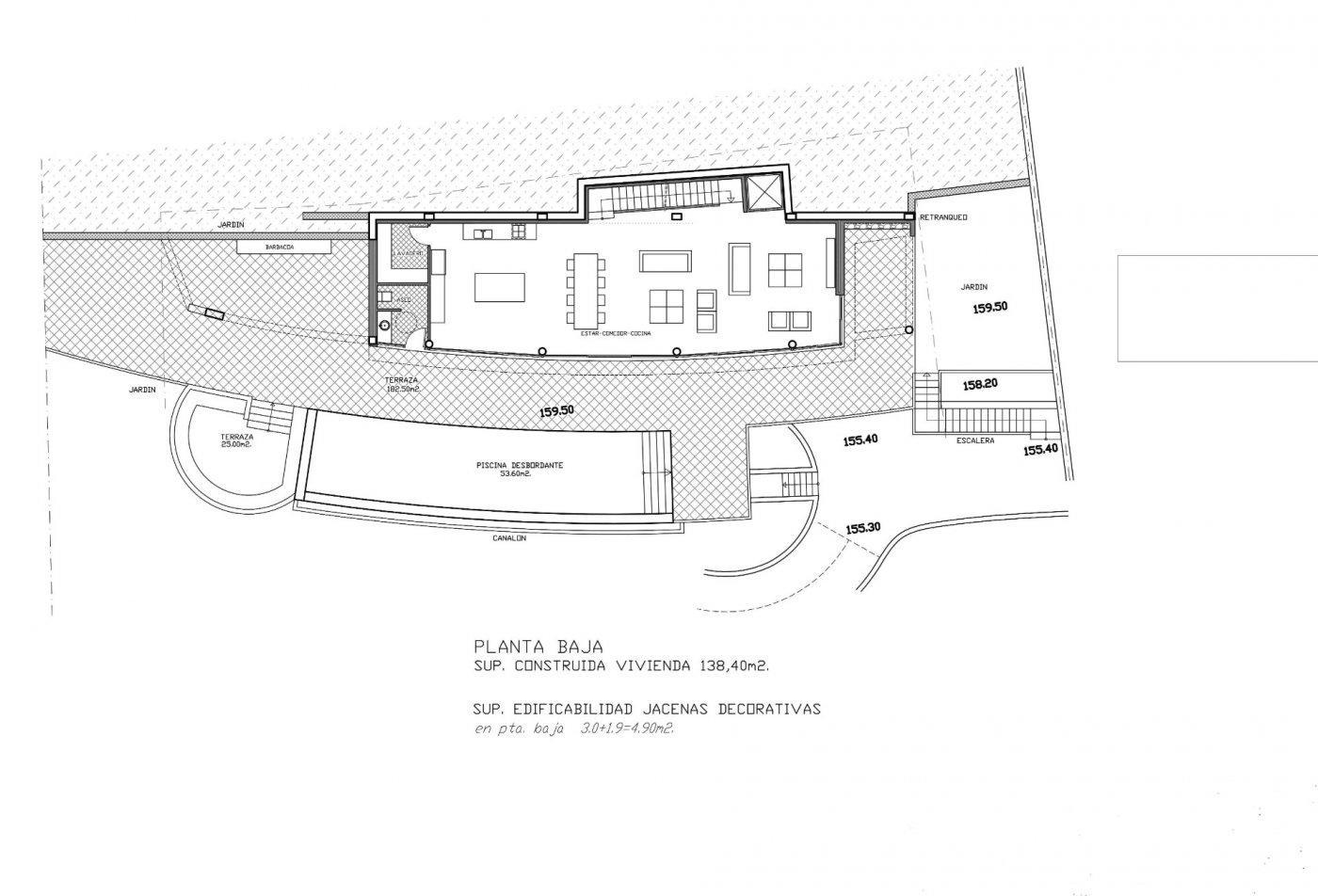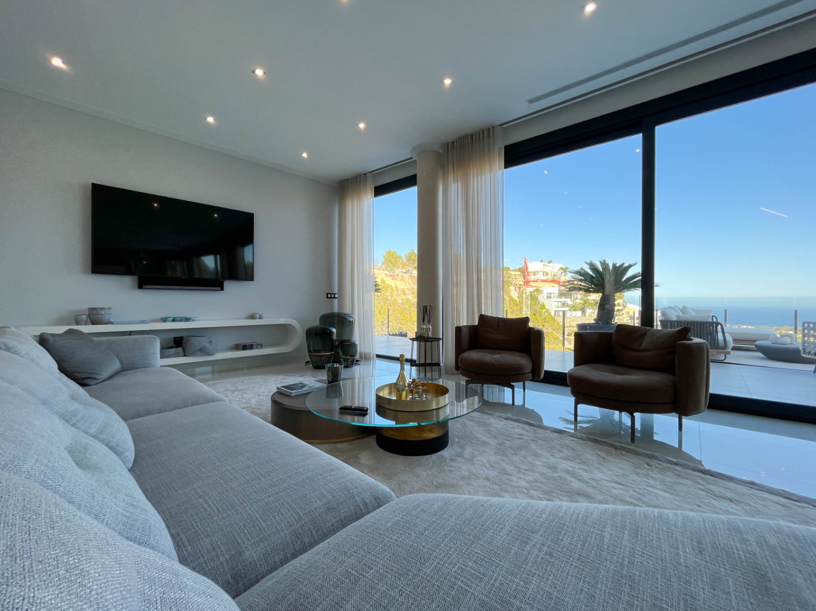 Buitenruimte: De buitenruimte van het huis is ontworpen om optimaal te genieten van de levenskwaliteit die de Costa Blanca te bieden heeft. Het heeft een nieuwe zomerkeuken, jacuzzi, overloopzwembad en een lounge met buitenbarbecue, ideaal om te ontspannen en te genieten van het prachtige uitzicht op zee.